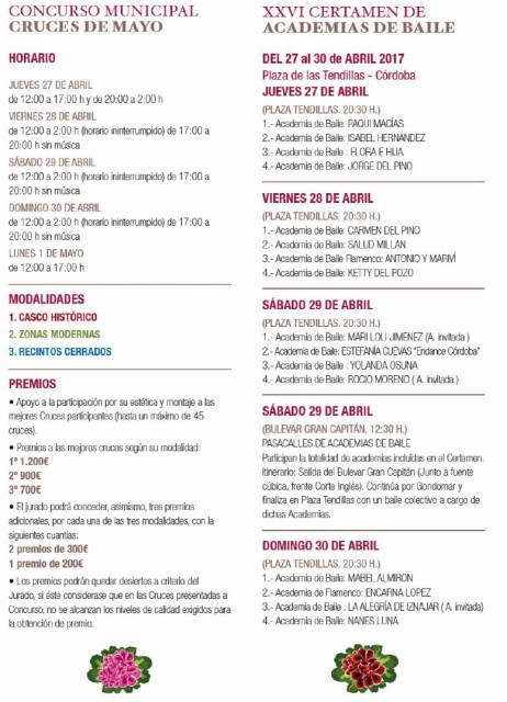 Junto con la Batalla de las Flores que se celebra a principios de mayo, en la que una cabalgata de carrozas decoradas con flores pasean por Córdoba dando la bienvenida a la primavera, se celebra el Concurso Popular de Cruces de Mayo de Córdoba.