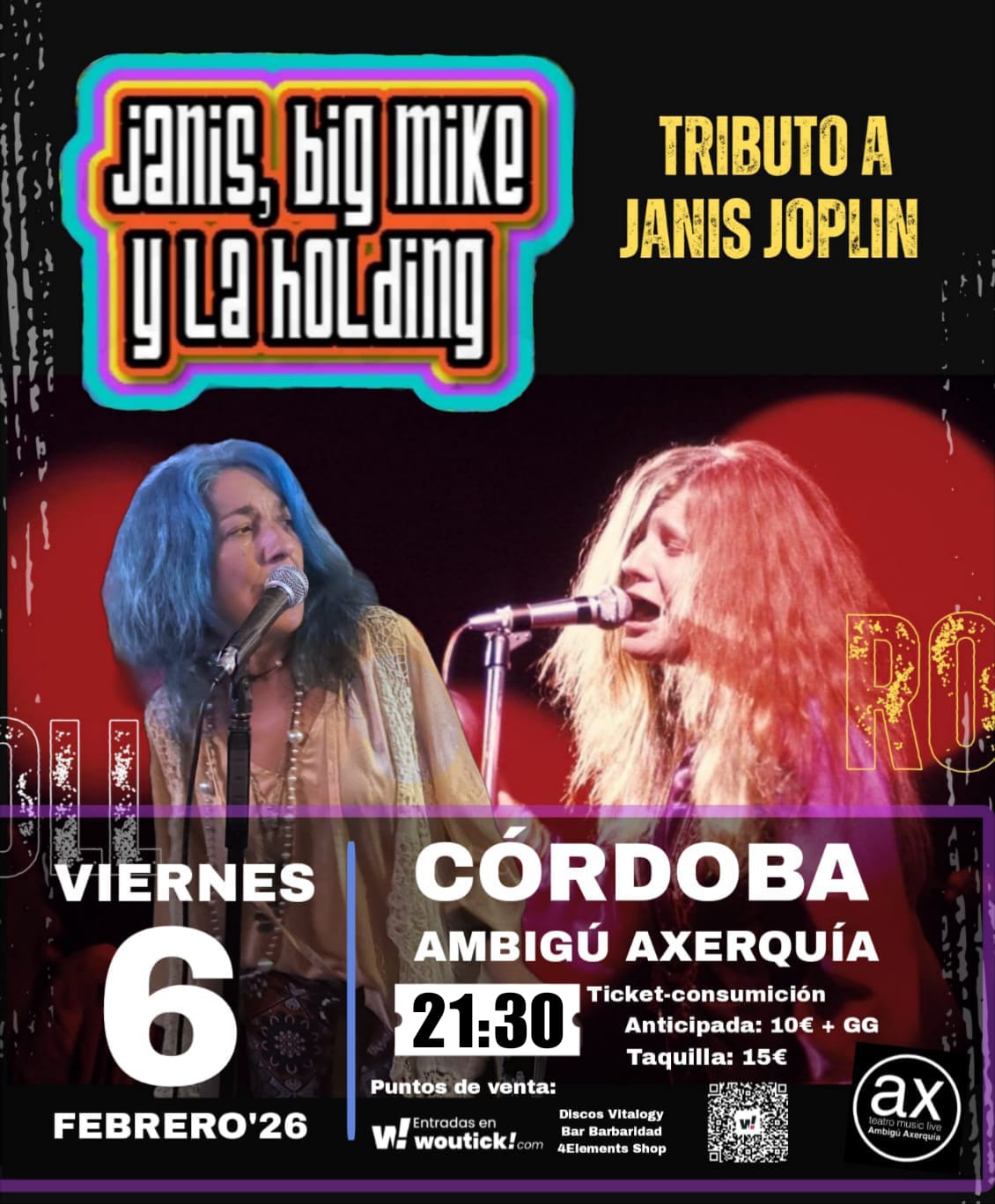 La energía salvaje, la voz desgarrada y la autenticidad irrepetible de Janis Joplin reviven sobre el escenario con “Janis, Big Mike y la Holding”, un tributo apasionado que transporta al público a la era dorada del blues rock de los años 60.