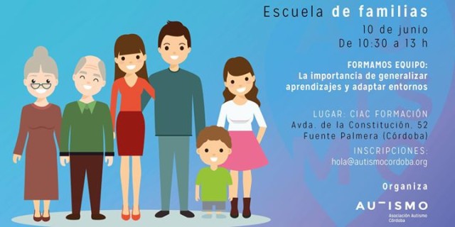 Nueva sesión de nuestro ciclo de Escuela de Familias. En esta ocasión, bajo el título «Formamos Equipo» hablaremos de la necesidad de involucrar al máximo el entorno del niño/a, generalizar los aprendizajes en casa, proporcionar apoyos, etc…