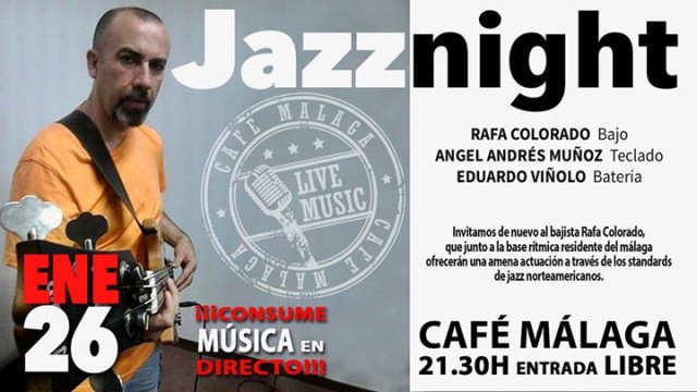 Invitamos de nuevo al bajista Rafa Colorado, que junto a la base rítmica residente del málaga ofrecerán una amena actuación a través de los standards de jazz norteamericanos.