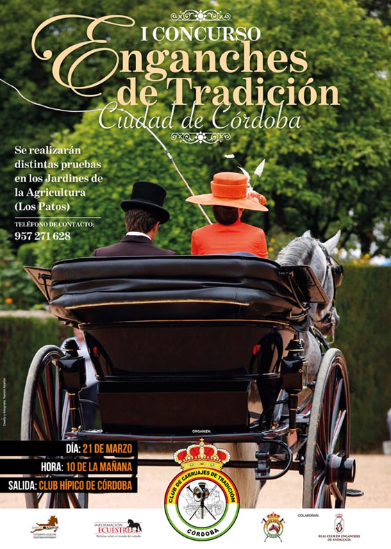 El Club de Carruajes de Tradición de Córdoba organiza, el sábado 21 de marzo, el I Concurso de Carruajes de Tradición Ciudad de Córdoba, con salida desde el Club Hípico, donde se realizará la presentación, para iniciar la prueba de recorrido, que llegará hasta los Jardines de la Agricultura (Los Patos), donde habrá cinco pasos obligatorios, para regresar de nuevo al Hípico, teniendo lugar la prueba de manejabilidad. El concurso cuenta con la colaboración del Club Hípico de Córdoba, Real Club de Enganches de Andalucía y Córdoba Ecuestre. La participación está limitado a 15 coches, tanto de dos ruedas como de cuatro, enganchados a la limonera, tronco, tresillo y cuarta, siendo la mayoría de los participantes concursantes a nivel internacional, que participarán con coches de época, restaurados y modernos, procedentes de varias provincias españolas. El concurso será valorado por tres jueces internacionales, presidido por Raimundo Coral, acompañado por los vocales Amalio Martín y Eduardo Tejera. El delegado técnico es Ramón Moreno de los Ríos. La prueba se rige por el Reglamento de la AIAT (Asociación Internacional de Enganches de Tradición). Dentro de los actos de este I Concurso de Carruajes de Tradición Ciudad de Córdoba, el viernes 20, tras la reunión técnica, se celebrará una cena en el Club Hípico. Y el sábado, tras la finalización de la competición tendrá lugar la comida oficial, un concurso de cestones, aportados por los participantes. El Club de Carruajes de Tradición está realizando una magnífica labor tanto en la vertiente deportiva como de tradición. En ésta última, además de ofrecer cursos sobre diferentes materias y participar en exhibiciones fuera de Córdoba, ha instituido la Exhibición de Carruajes de Tradición Ntra. Sra. de la Salud, que se realiza en los jardines del Alcázar de los Reyes Cristianos el primer sábado de la Feria de la Salud o de Mayo, acompañando después en cortejo al estandarte de la Protohermandad de la Salud hasta el Real. Entre sus socios se encuentran propietarios de importantes colecciones de coches.