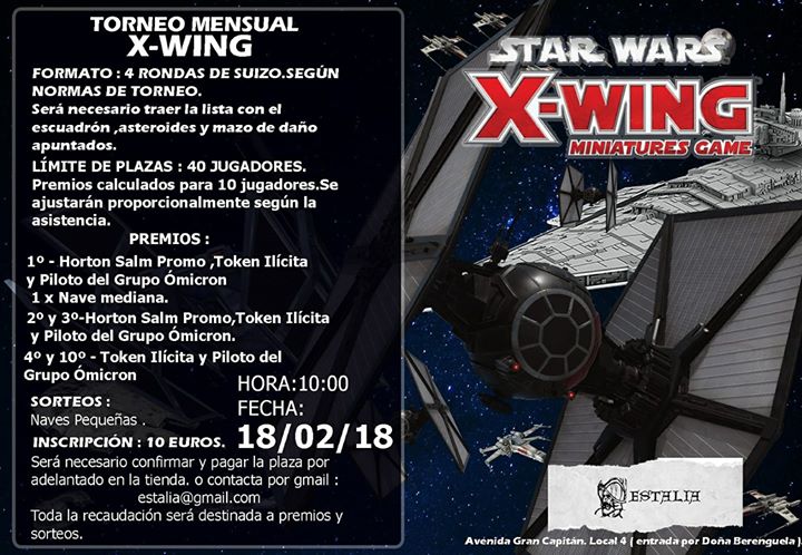 Como es habitual cada tercer domingo del més, Estalia organiza el torneo de X-Wing.