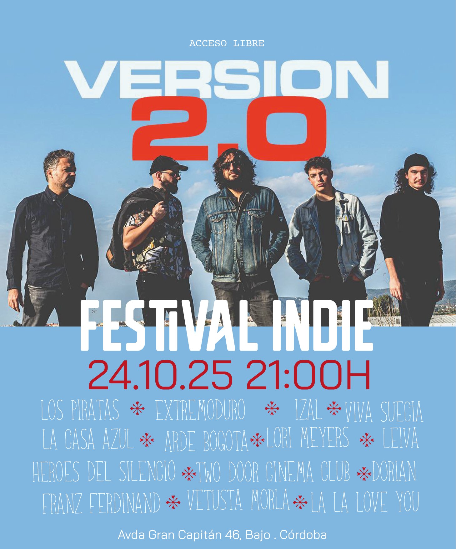 La banda de tributo Versión 2.0 con lo mejor del INDIE-ROCK alternativo, interpretan temazos de Los Piratas, Extremoduro, The Strokes, Franz Ferdinand, Vetusta Morla, Izal, Love of Lesbian, Leiva, Sidonie, Los planetas, Supersubmarina, Lori Meyers, La Casa Azul, Dani Fernández, El canto del loco, Two Door Cinema Club entre otros, en un espectáculo cargado de emoción e interacción con el público.