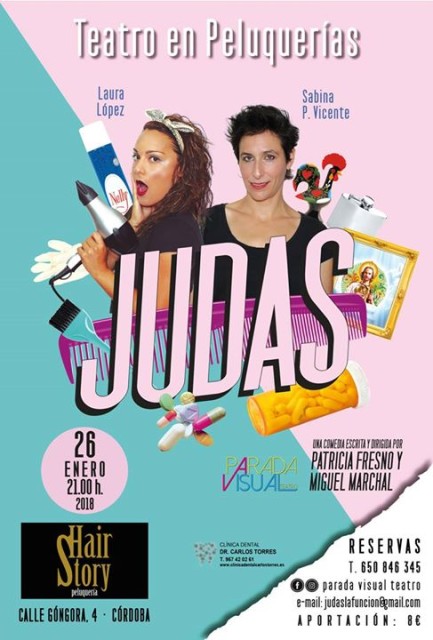 Parada Visual Teatro, apuesta por una forma distinta y fresca de hacer teatro en Córdoba, Judas se representa en peluquerías. Una comedia impertinente sobre las relaciones humanas. Una obra escrita y dirigida por Patricia Fresno y Miguel Marchal e interpretada Sabina P. Vicente y Laura López.