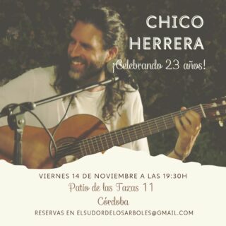 Celebramos con un concierto muy especial, íntimo y cercano, que se cumplirán 23 de años de música, experiencias, profesion…de CHICO HERRERA. 🙌 Si quieres asistir reserva en: elsudordelosarboles@gmail.com indicando el número de personas. 🎁Se regalará un disco a elegir de su discografía a cada persona que venga🎁 Y alguna otra sorpresa más! 🍷 🥳🥳🥳Únete a […]