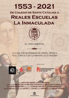 Presentación del documental ‘De colegio de Santa Catalina a Reales Escuelas La Inmaculada’ (1553-2021). Intervendrán: Giuseppe Palmieri, director de cine, y José Miguel Gutiérrez Manjón Cabezas, director del área de Cine y Fotografía (CineClub) del Real Círculo de la Amistad. Jueves, 23 de febrero. 19:00 h. Sala Julio Romero de Torres